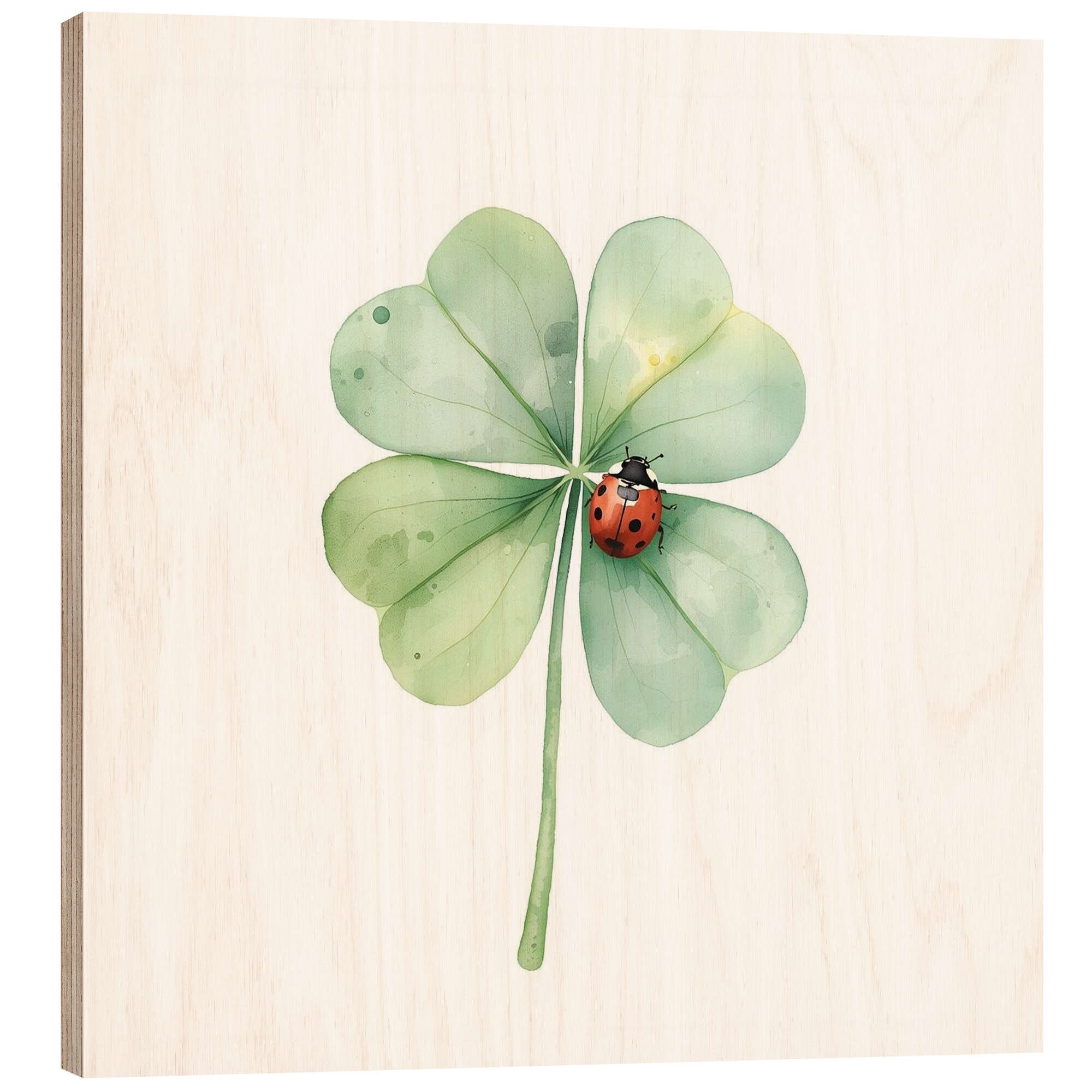 Posterlounge   Quadros   Ilustrações   Ohkimiko   Quadro de madeira Clover With Ladybug