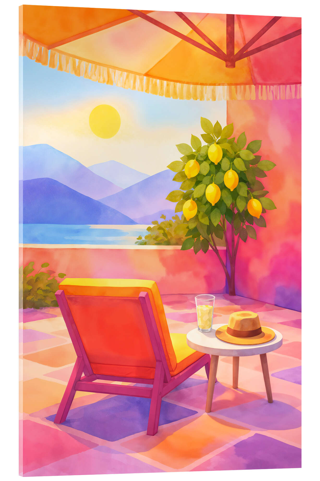 Posterlounge   Quadros   Ilustrações   Natalie Bruns   Quadro em acrílico Mediterranean terrace with lemon tree and sea view